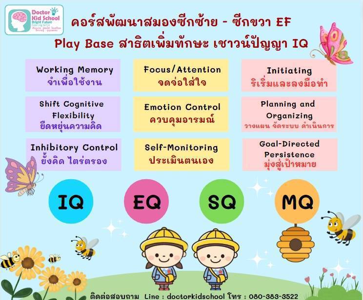 ฝึก IQ EQ EF อย่างสมดุล ฝึกคิดวิเคราะห์ แก้ปัญหาเฉพาะหน้า ปฏิภาณไหวพริบ การวางแผน ความจำ ความยืดหยุ่นแห่งความคิด ฝึก EF ทั้ง 9 ด้าน