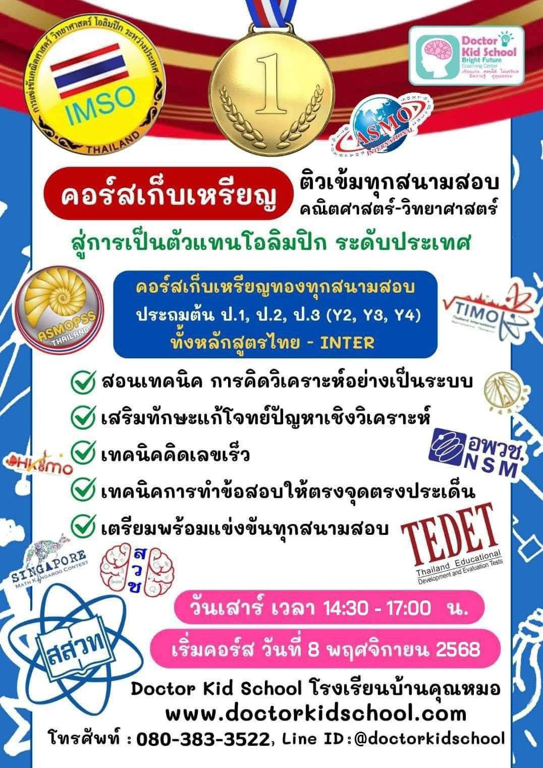 ติวแข่งขันคณิตศาสตร์ - วิทยาศาสตร์ สำหรับเด็กประถมต้น-ปลาย ในสนามแข่งขันโอลิมปิกวิชาการต่างๆ เช่น ASMO, ASMOPSS, TEDET, TIMO, HKISO, Kangaroo, Singapore Math, สวช, สสวท